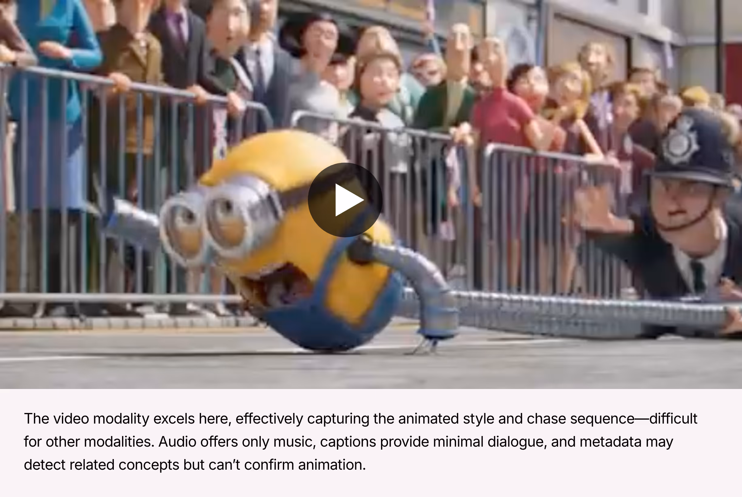 In this blog, we explore how leveraging multiple modalities enhances both retrieval accuracy—ensuring the most relevant content is surfaced—and retrieval coverage—broadening the range of videos that align with diverse contextual needs.